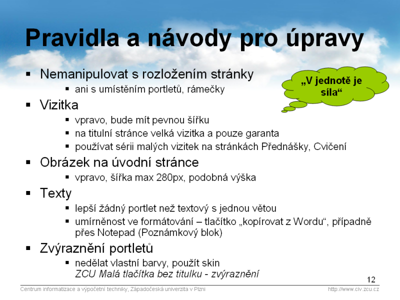 The system is sufficiently comprehensive and user-friendly that it meets the needs of all University Faculties. Its primary advantage is the maximum integration and extraction of the information entered into the study administration and information system IS/STAG and other UWB systems. Courseware is integrated into the University Portal website, which is operated with the IBM WebSphere Portal technology.