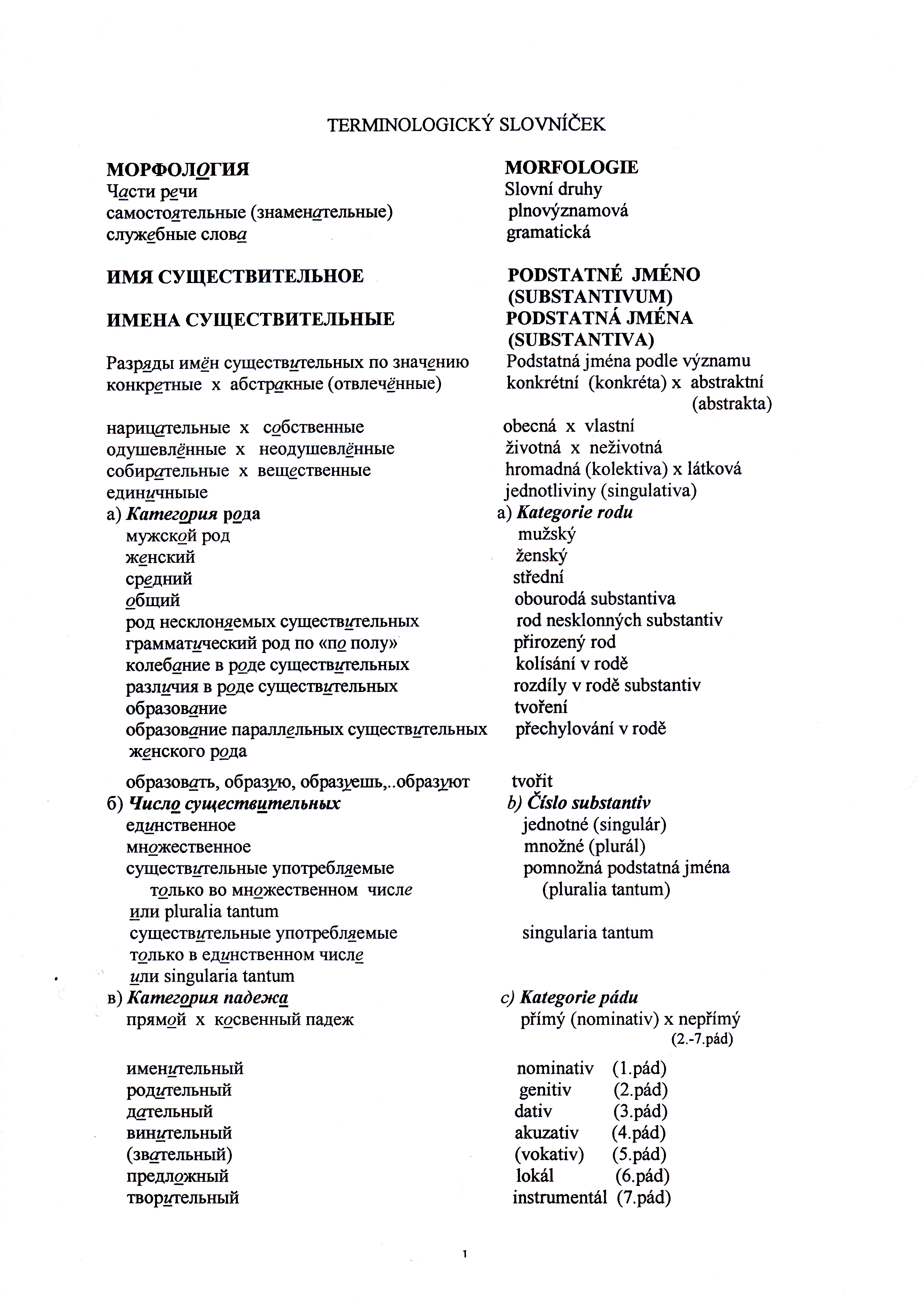 Seminární cvičení z morfologie ruštiny