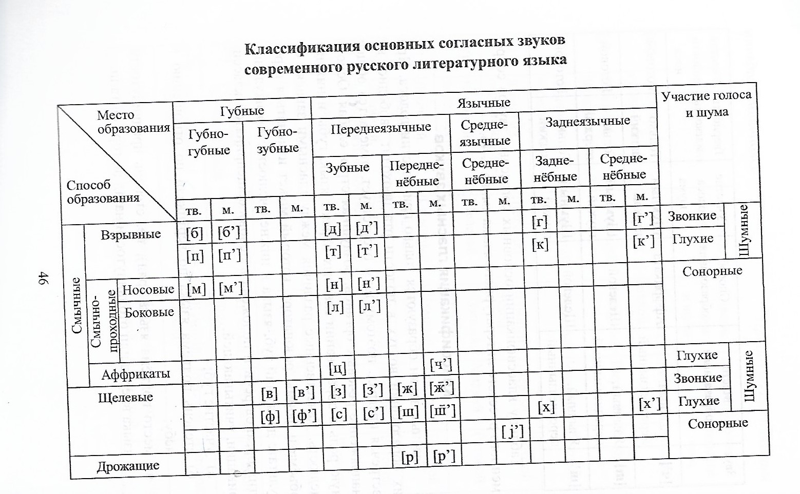 4. Systém souhlásek ruského jazyka. Klasifikace dle místa a způsobu vzniku. Zvláštnosti v porovnání se systémem souhlásek v českém jazyce.